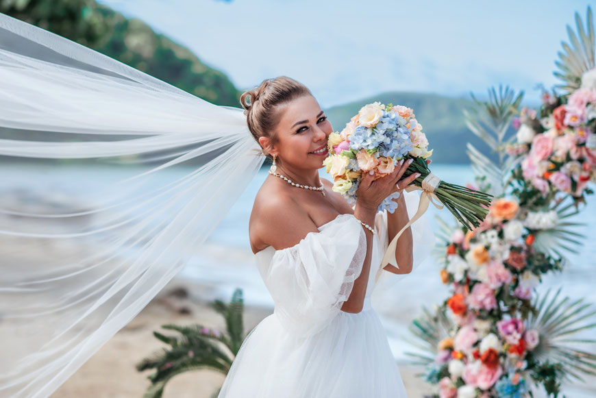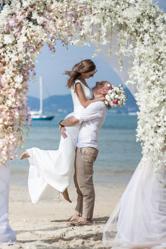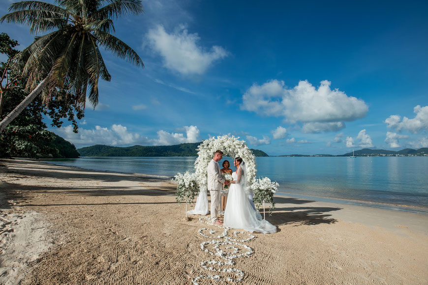 Остров Пхукет в Таиланде по праву считается одним из самых красивых и желанных мест в мире для проведения свадеб. Комфортный климат и ошеломляющая природа острова Пхукет - это настоящий рай на нашей планете! Каждая невеста мечтает о незабываемом свадебном дне на берегу лазурного океана в окружении самых близких людей, высоких пальм и бескрайнего синего неба. И свадьба в Таиланде на Пхукете с нашей дружной командой профессионалов - это идеальное решение в соотношении красоты, цены и качества для воплощения Вашей мечты!