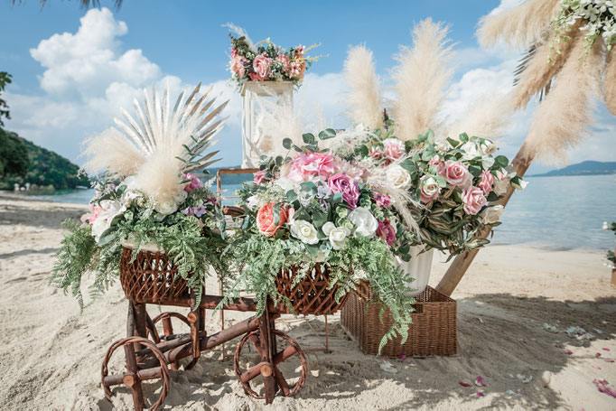 Стоимость декорирования на пляже указана для утренних церемоний. Для вечерних церемоний стоимость оформления существенно отличается из-за сложности работы флористов на пляже под открытым солнцем!